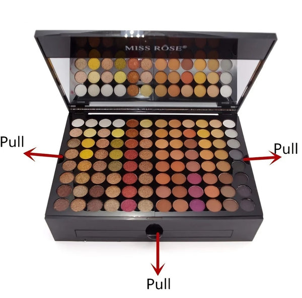 The set includes a full range: lipsticks, eyeshadow palettes, blush, and more for a complete look.